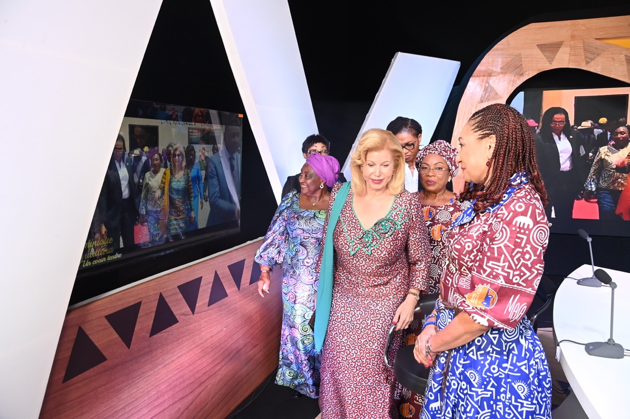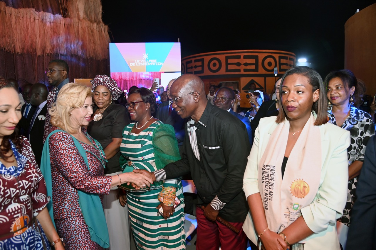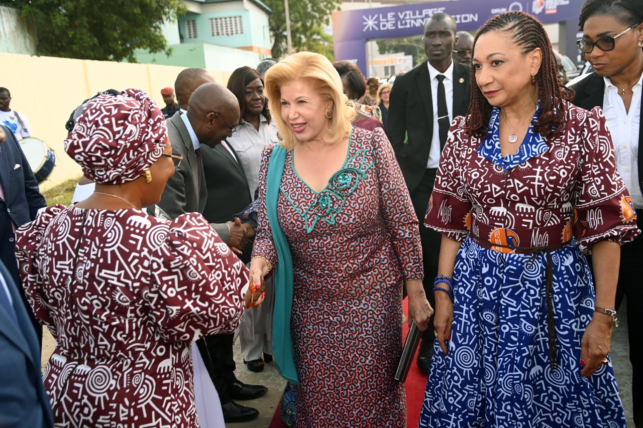 La Première Dame, Madame Dominique Ouattara, a présidé ce lundi 13 avril 202, la cérémonie d’inauguration du Village de l’Innovation, organisée dans le cadre de la 14ᵉ édition du Marché des Arts du Spectacle Africain d’Abidjan, au Palais de la Culture d’Abidjan.