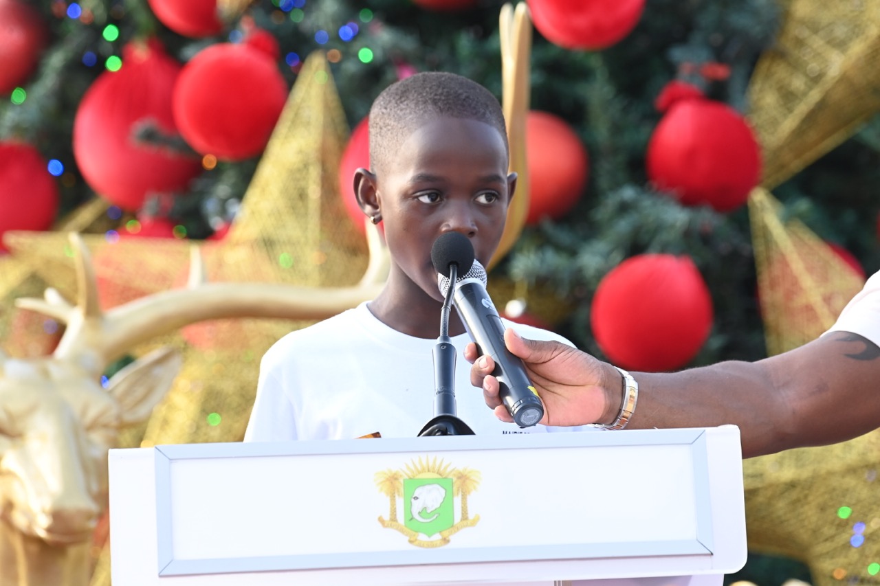 Mademoiselle Sangaré Rana, âgées de 9 ans, élève en classe de CM2 à Bouaké et porte-parole des enfants, a remercié la Première Dame pour l’amour qu’elle procure aux milliers d’enfants à l’occasion de l’arbre de Noël. « Votre générosité bienveillante transforme les rêves des enfants en réalité », a-t-elle soutenu.