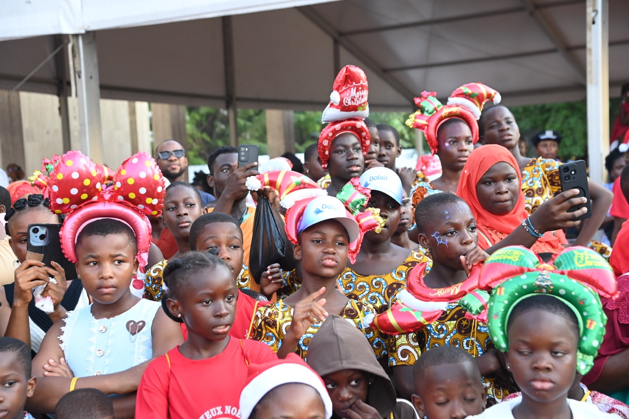 L’édition 2025 de l’Arbre de Noël de la Fondation Children Of Africa s’est tenue sous le thème de la créativité des enfants, mettant en avant l’imagination, le rêve et l’expression artistique comme leviers d’un avenir meilleur. Ateliers créatifs, chants, danses et animations ont rythmé la journée, au grand bonheur des enfants. En outre, un concours de dessin, autour du thème « Dessine ton héros préféré avec le Père Noël », a particulièrement retenu l’attention. De nombreuses associations, centres de protection, écoles, hôpitaux et structures œuvrant pour l’enfance ont pris part à cette célébration. Des enfants venus de Bouaké, des communes d’Abidjan, des orphelinats, des ONG partenaires, ainsi que des institutions publiques et privées ont contribué à faire de cet événement un moment de partage et de fraternité.  Ainsi, dans une ambiance empreinte de joie, de rires et d’émerveillement, près de 3 000 enfants âgés de 3 à 9 ans, venus de divers horizons, ont été les invités d’honneur de cette grande fête dédiée à l’enfance. Ils ont pu communier avec des artistes de renom tels que Serge Beynaud, DJ Kedjevara, Abomet l’Eléphant et bien d’autres. Ils ont également pu découvrir avec beaucoup d’émerveillement un spectacle d’acrobates pour leur plus grand plaisir, avec en prime Kia et ses clowns des Bouldegums qui ont assuré la première partie du spectacle avec des jeux, des concours de danse et bien d’autres loisirs.