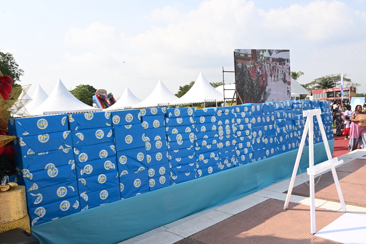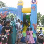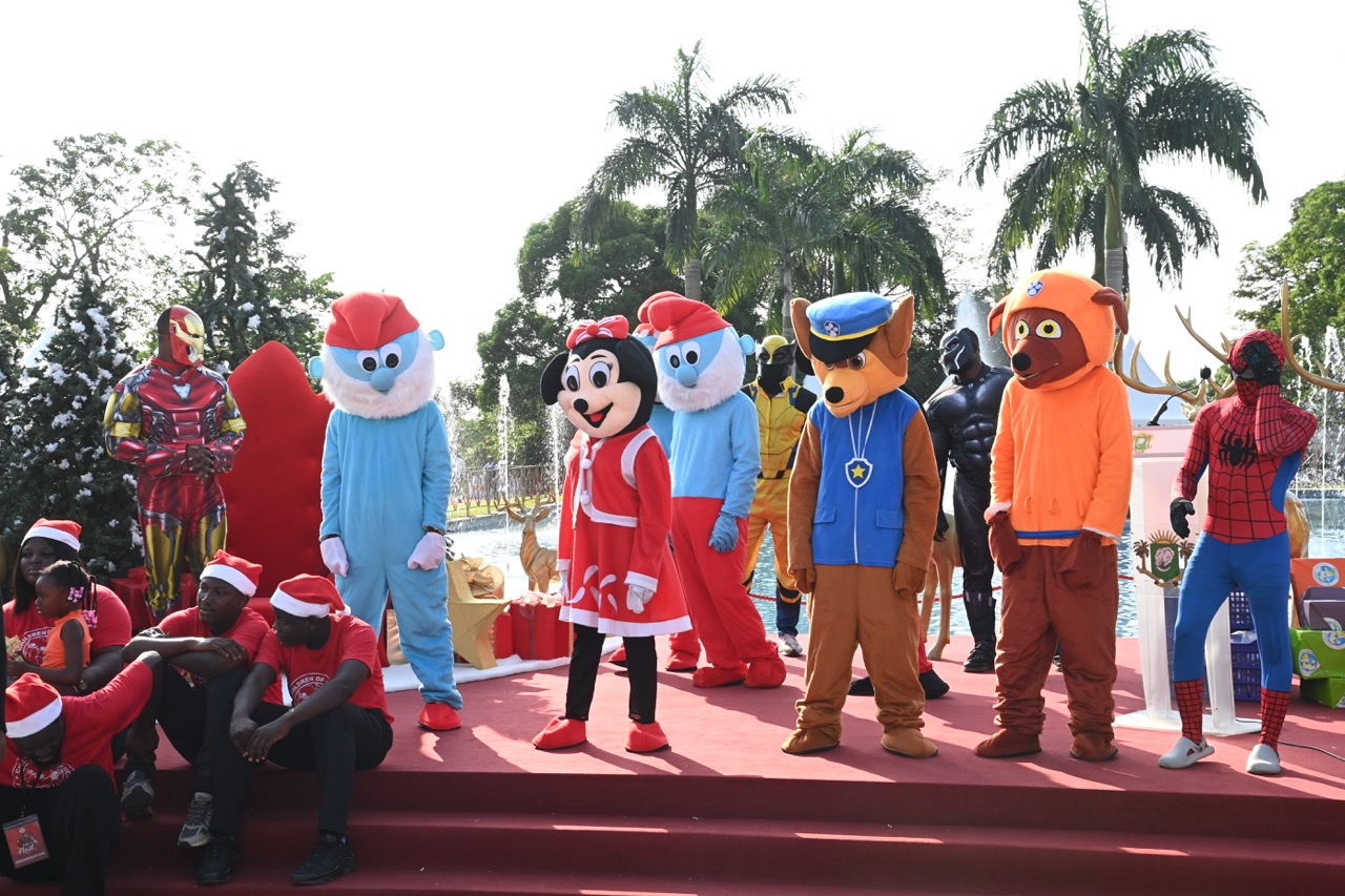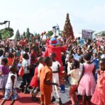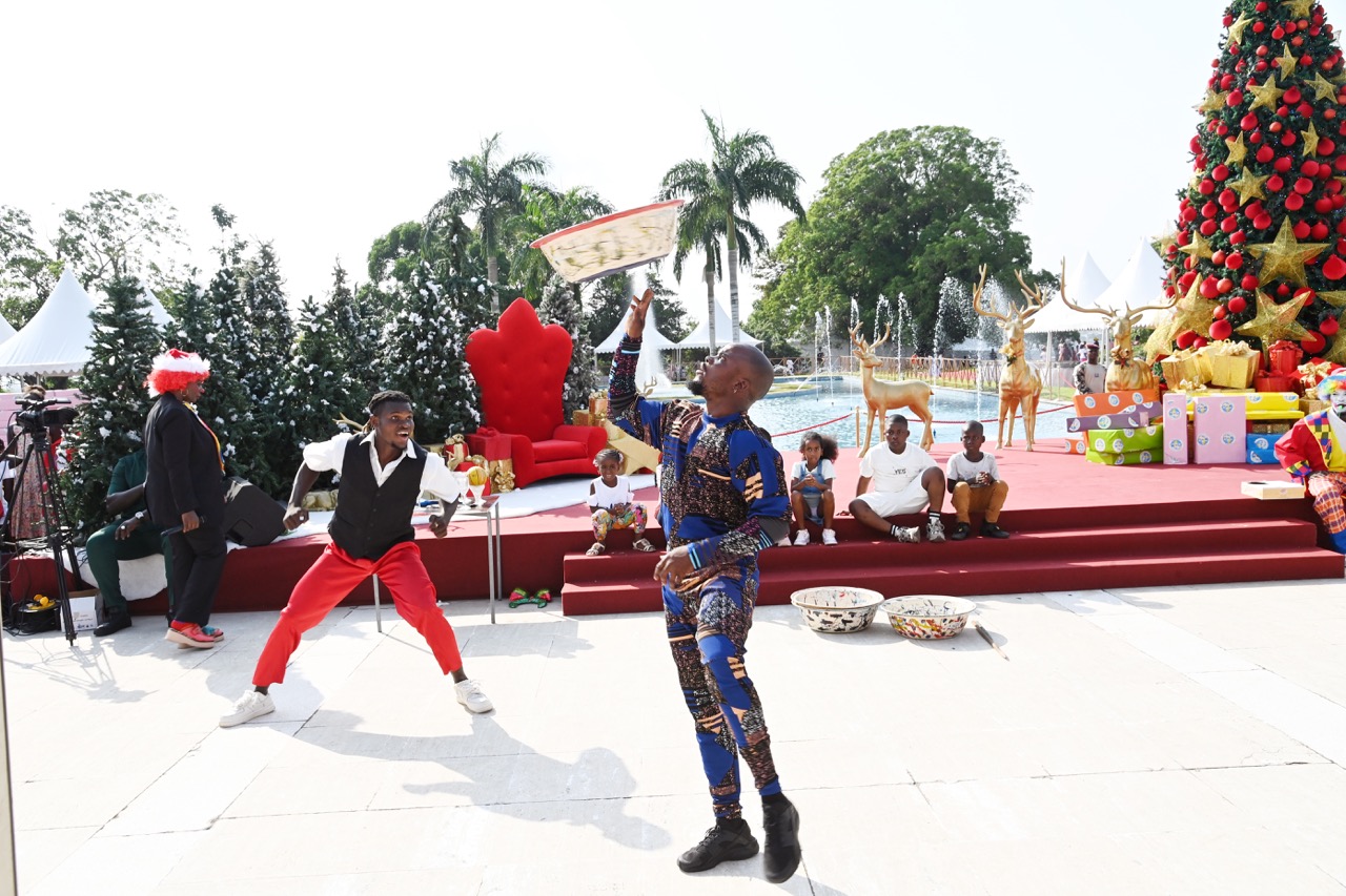 Cette année encore, les milliers d’enfants présents dans le jardin du Palais Présidentiel ont assisté avec beaucoup de joie à l’arrivée du Père Noël en hélicoptère « depuis le pôle Nord ». Après son atterrissage, le Père Noël a été escorté par des supers héros tels que Iron Man, Wolverine ou Captain America. C’est donc tout un chapelet de programmes alléchants que les tout-petits invités de Madame Dominique Ouattara ont pu découvrir à l’occasion de cette édition 2025 de l’arbre de Noël.