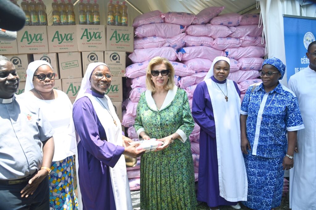 Comme chaque année, Madame Dominique Ouattara, Présidente de la Fondation Children Of Africa, a renouvelé son engagement en faveur des populations les plus démunies. En effet, pour l’édition 2026, des dons composés de denrées alimentaires de première nécessité ont été remis aux communautés chrétiennes. Ce sont notamment 3.000 sacs de riz de 25 kg ; 2.000 sacs de sucre de 25 kg ; 3.000 sachets de pâtes alimentaires de 5 kg ; 1.200 cartons de bidons d’huile ; 500 cartons de boîtes de pâte de tomate ; 300 cartons de boites de lait et 200 cartons de petits pois qui seront distribués aux paroisses catholiques, aux églises méthodistes, aux églises évangéliques, aux églises révélées d’Afrique, ainsi qu’aux différentes congrégations et associations religieuses. « Pour cette année 2026, nous sommes heureux de remettre des dons d’une valeur de 130 millions de FCFA à la communauté chrétienne de notre pays. Ces dons sont destinés à soutenir les familles les plus vulnérables afin qu’elles puissent vivre sereinement le carême », a indiqué Madame Dominique Ouattara.