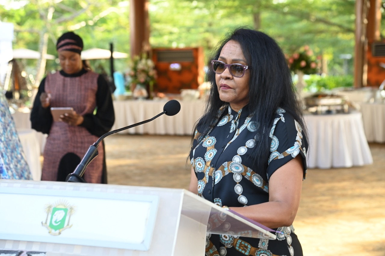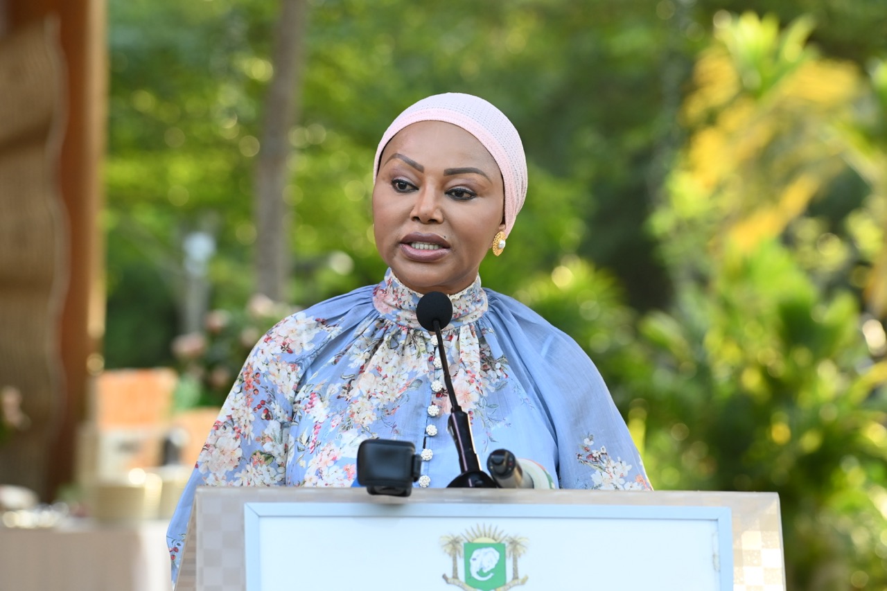 Madame Nassénéba Touré, Ministre de la Femme, de la Famille et de l’Enfant, a, au nom de l’ensemble des femmes présentes, souhaiter les vœux les meilleurs à l’épouse du Chef de l’Etat. Elle a loué ses grandes réalisations aux côtés du Président de la République tout en saluant son leadership et son impact sur des milliers de femmes en Côte d’Ivoire qui voient en elle, un modèle inspirant. « Merci d’avoir accepté, une fois de plus, de partager son fardeau et d’accompagner sa vision. Vous êtes, avec le Président, les deux pièces maîtresses d’un même édifice, avançant dans une harmonie parfaite. C’est cette lumière douce et constante qui donne à l’action de notre Guide éclairé, toute sa dimension humaine », a-t-elle déclaré. Elle a également ajouté : « Au-delà de votre statut de Première Dame, vous êtes un repère, une boussole.  Si la Côte d’Ivoire avance aujourd’hui à pas de géant, c’est parce que guidées par votre exemple, ses femmes se sont levées pour participer pleinement à sa construction.