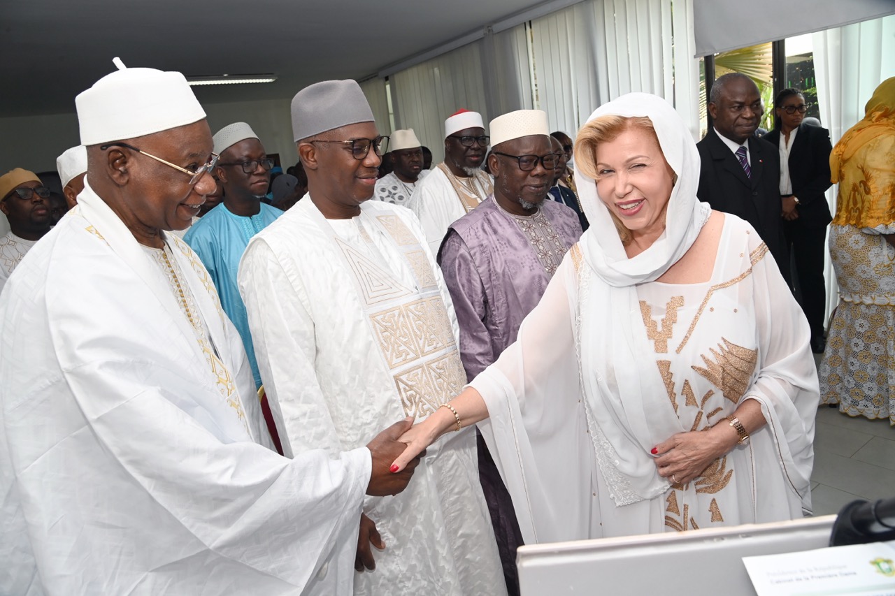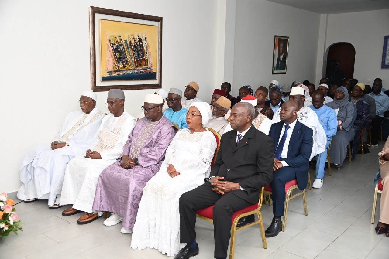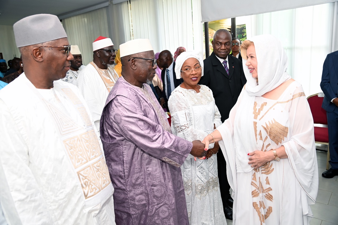 La Première Dame a rendu un hommage appuyé aux guides religieux, notamment au Cheickoul Aïma Ousmane Diakité, Président du Conseil Supérieur des Imams en Côte d’Ivoire (COSIM), au Cheick Sonta Moustapha, Khalif Général de la Tidianiya, à l’Imam Cissé Djiguiba, ainsi qu’au Khalif Sy Savané Mohamed Lamine. Elle a salué leur contribution à la paix et à la cohésion sociale en Côte d’Ivoire.