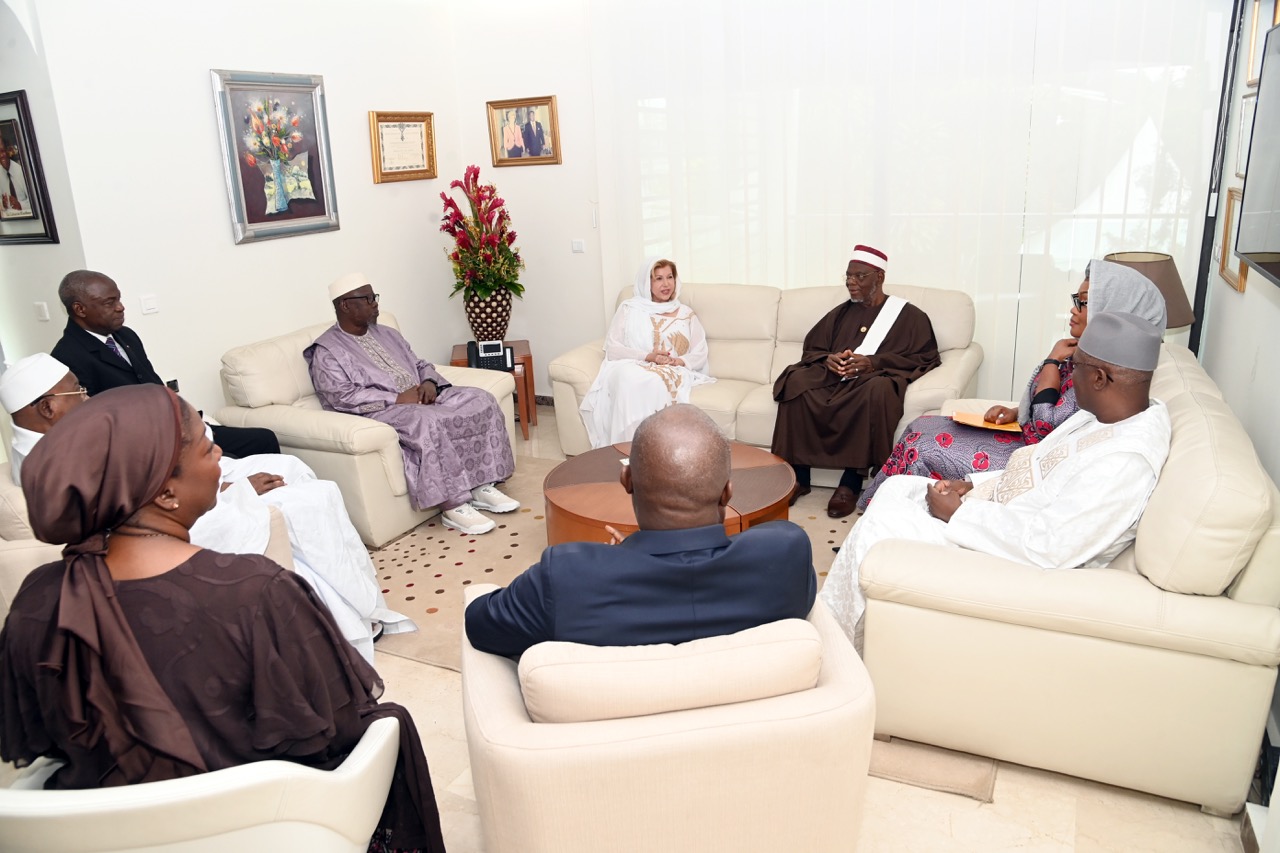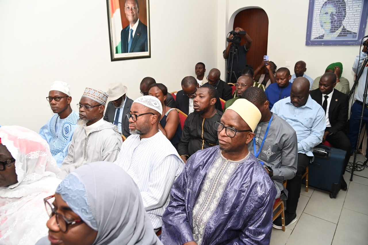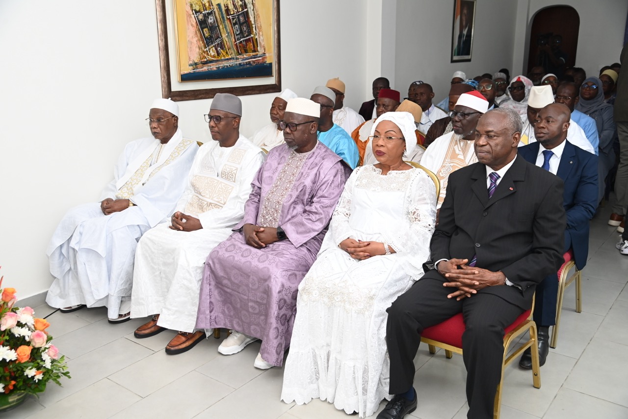 La Première Dame a rendu un hommage appuyé aux guides religieux, notamment au Cheickoul Aïma Ousmane Diakité, Président du Conseil Supérieur des Imams en Côte d’Ivoire (COSIM), au Cheick Sonta Moustapha, Khalif Général de la Tidianiya, à l’Imam Cissé Djiguiba, ainsi qu’au Khalif Sy Savané Mohamed Lamine. Elle a salué leur contribution à la paix et à la cohésion sociale en Côte d’Ivoire.