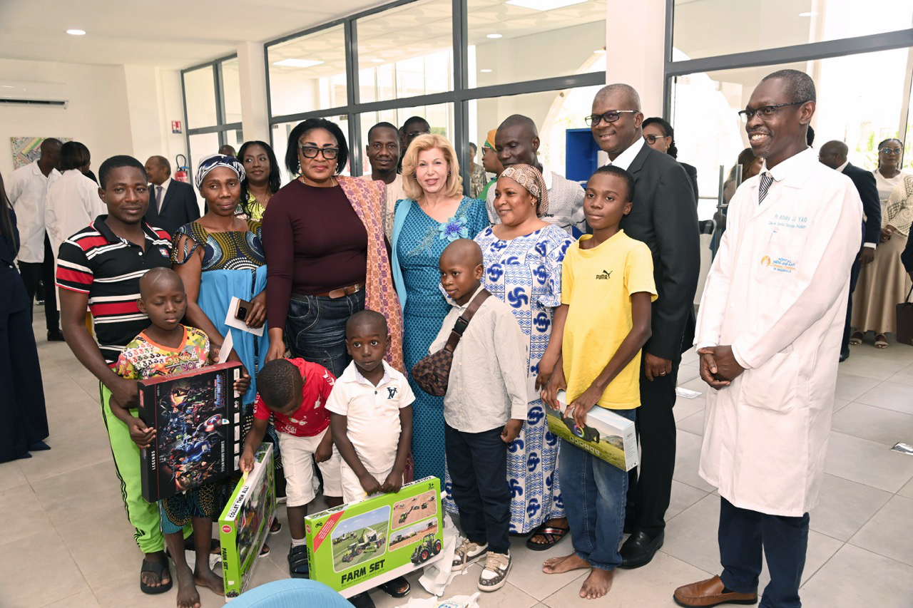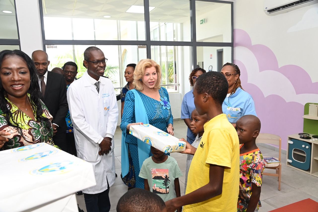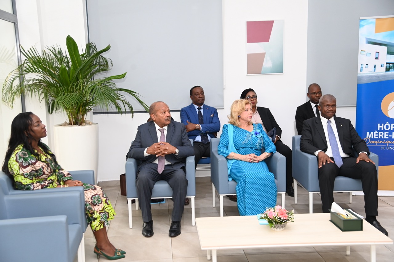 Enfin, Madame Dominique Ouattara a rendu un hommage appuyé à Monsieur Hachim Diop, Directeur Général de l’Hôpital Mère-Enfant de Bingerville, ainsi qu’à l’ensemble du personnel médical, soignant et administratif, pour leur travail remarquable et leur engagement quotidien au service des patients.