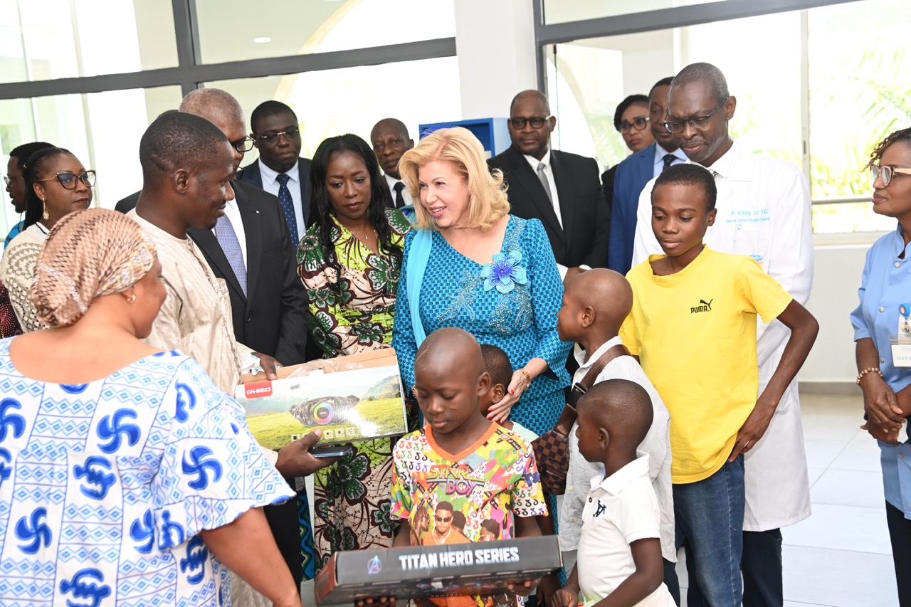 Notons que bien avant le début de cette cérémonie, la Première Dame, Madame Dominique Ouattara et Monsieur Abou Bakar Ouattara, ainsi que l’ensemble des membres de leurs délégations ont visité la Maison de vie de l’HME de Bingerville et offert des cadeaux aux enfants malades.